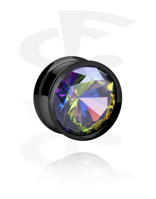 Tunel s rozšířenými konci (chirurgická ocel, černá, lesklý povrch) s krystalovým kamínkem