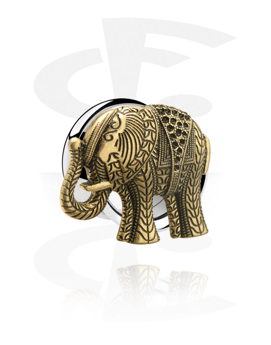 Tunel s rozšířenými konci (chirurgická ocel, stříbrná, lesklý povrch) s koncovkou slon
