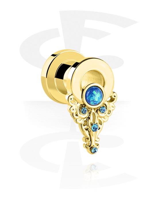 Šroubovací tunel (chirurgická ocel, zlatá, lesklý povrch) s vintage designem a krystalovými kamínky