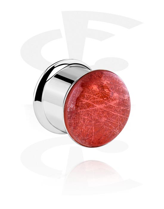 Tunel s rozšířenými konci (chirurgická ocel, stříbrná, lesklý povrch) s víčkem v různých barvách