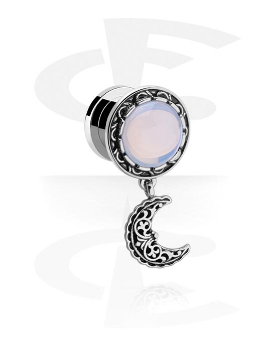 Šroubovací tunel (chirurgická ocel, stříbrná, lesklý povrch) s designem vintage měsíc