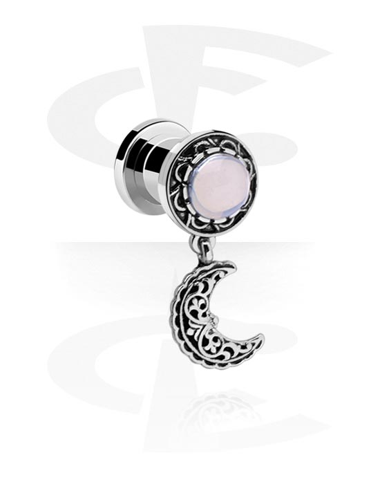 Šroubovací tunel (chirurgická ocel, stříbrná, lesklý povrch) s designem vintage měsíc