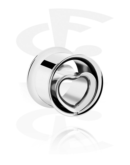 Tunel s rozšířenými konci (chirurgická ocel, stříbrná, lesklý povrch) s vložkou srdce