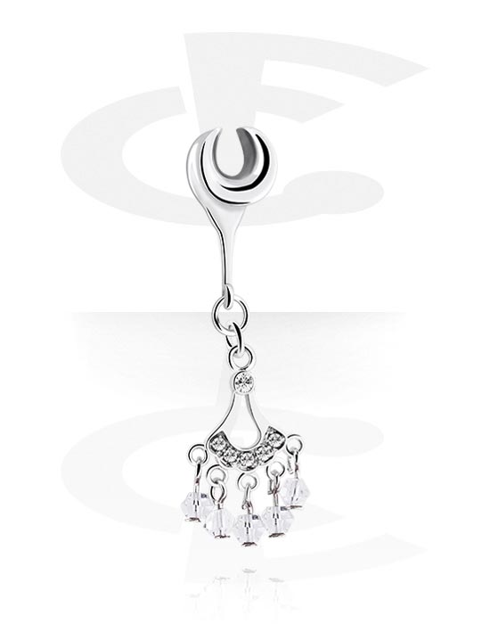 Poloviční tunel (ocel, stříbrná, lesklý povrch) s přívěskem a krystalovými kamínky
