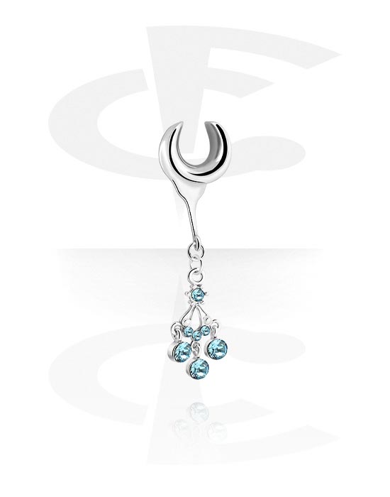Poloviční tunel (ocel, stříbrná, lesklý povrch) s přívěskem a krystalovými kamínky