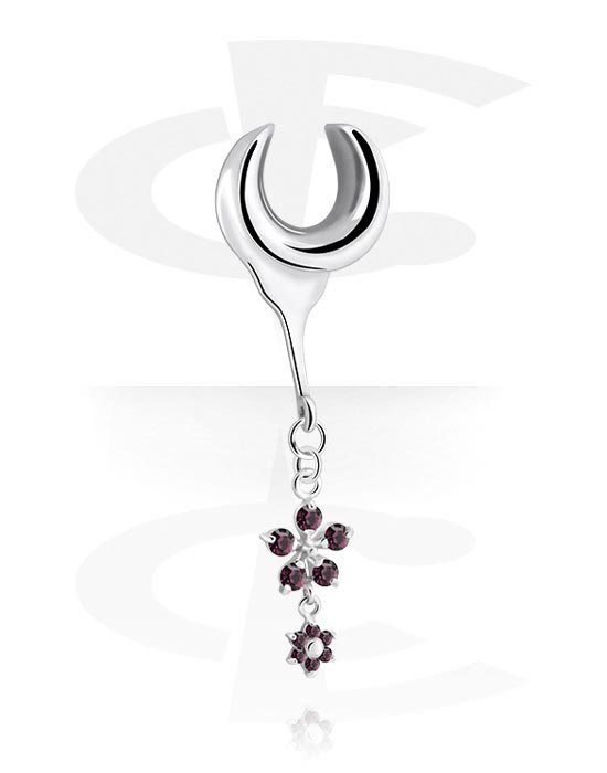 Poloviční tunel (ocel, stříbrná, lesklý povrch) s přívěskem květina a krystalovými kamínky