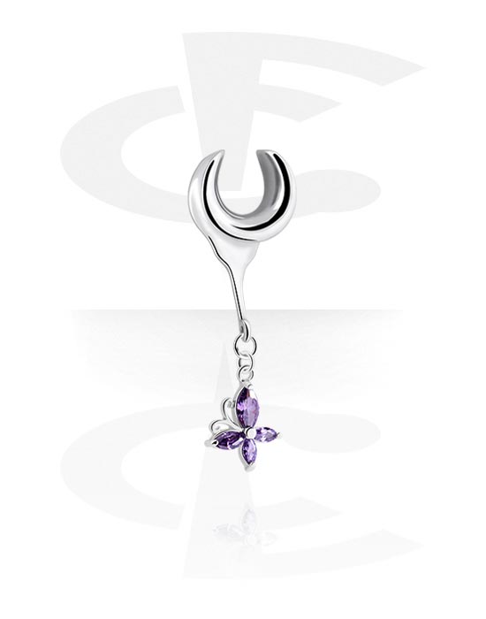 Poloviční tunel (ocel, stříbrná, lesklý povrch) s přívěskem květina a krystalovými kamínky