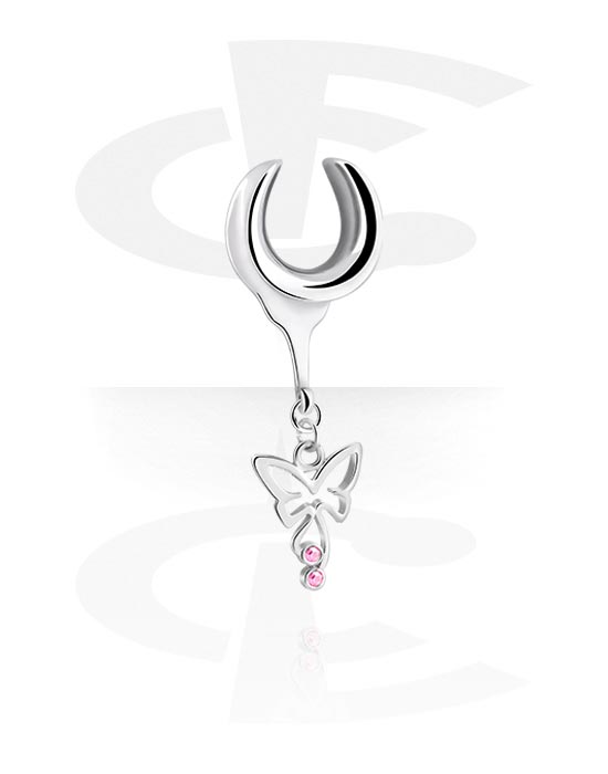 Poloviční tunel (ocel, stříbrná, lesklý povrch) s přívěskem motýl a krystalovými kamínky