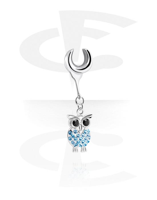 Poloviční tunel (ocel, stříbrná, lesklý povrch) s Přívěskem sova a krystalovými kamínky