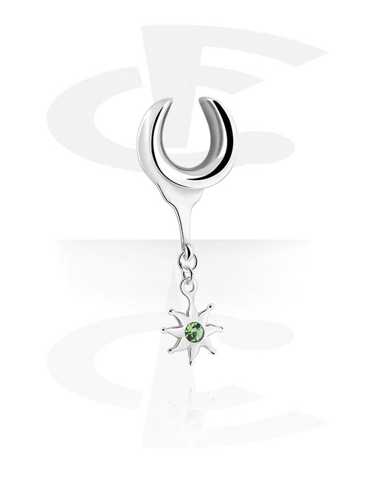 Poloviční tunel (ocel, stříbrná, lesklý povrch) s přívěskem slunce a krystalovým kamínkem