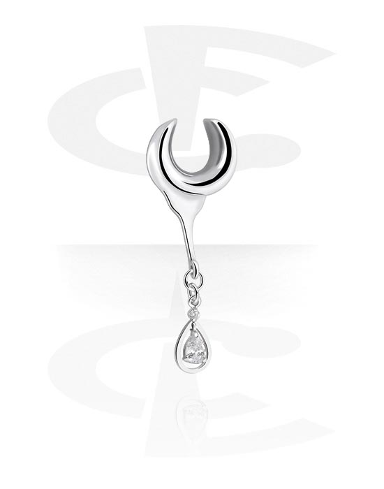 Poloviční tunel (chirurgická ocel, stříbrná, lesklý povrch) s krystalovým kamínkem