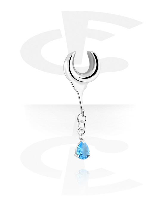Poloviční tunel (ocel, stříbrná, lesklý povrch) s přívěskem a krystalovým kamínkem