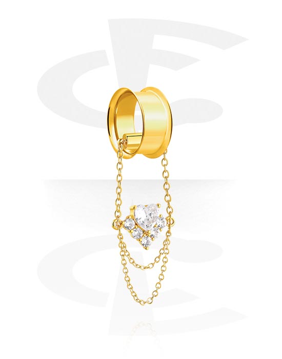 Tunel s rozšířenými konci (chirurgická ocel, zlatá, lesklý povrch) s krystalovými kamínky
