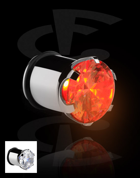 Plug s rozšířeným koncem (chirurgická ocel, stříbrná, lesklý povrch) s LED koncovkou a krystalovým kamínkem