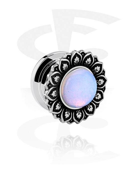 Šroubovací tunel (chirurgická ocel, stříbrná, lesklý povrch) s designem vintage květina