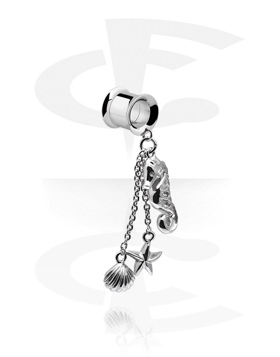 Tunel s rozšířenými konci (chirurgická ocel, stříbrná, lesklý povrch) s přívěskem mořský koník