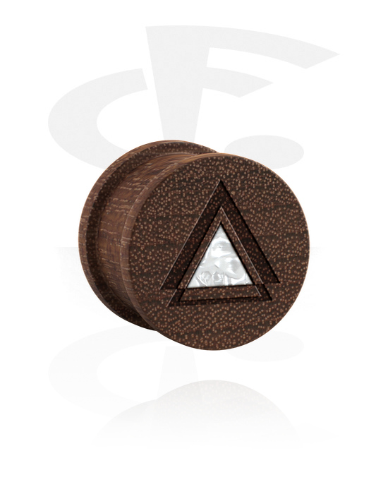 Žebrovaný plug (dřevo) s laserovým gravírováním „trojúhelníky“ a vložkou imitace perleti