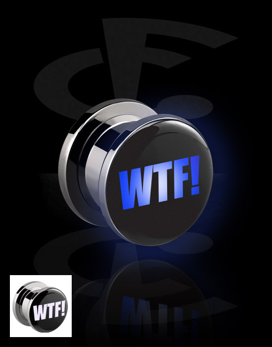 Šroubovací tunel (chirurgická ocel, černá, lesklý povrch) s LED koncovkou a nápisem „WTF!“