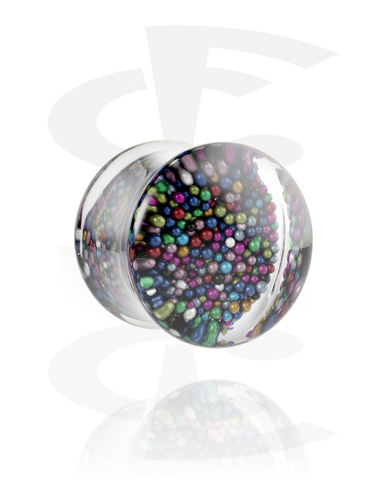 Plug s rozšířenými konci (akryl transparentní) s bublinkami uvnitř v různých barvách