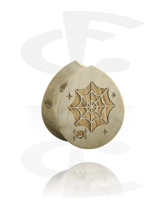 Plug s rozšířenými konci ve tvaru slzy (dřevo) s laserovým gravírováním „pavučina“