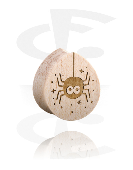 Plug s rozšířenými konci ve tvaru slzy (dřevo) s laserovým gravírováním „pavouk“