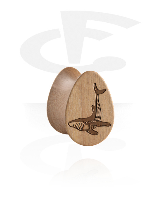 Plug s rozšířenými konci ve tvaru slzy (dřevo) s laserovým gravírováním „keporkak“