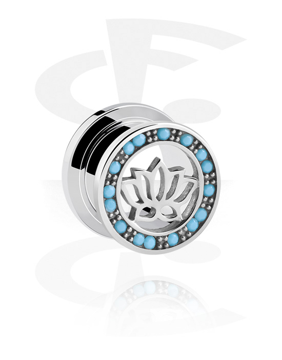 Šroubovací tunel (chirurgická ocel, stříbrná, lesklý povrch) s designem lotosový květ