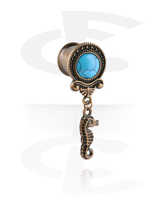 Tunel s rozšířenými konci (chirurgická ocel, antická měď) s vintage designem a přívěskem mořský koník