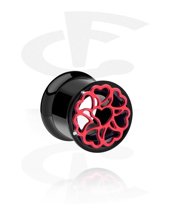 Tunel s rozšířenými konci (chirurgická ocel, černá, lesklý povrch) s designem srdce