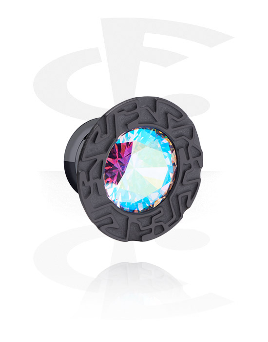 Tunel s rozšířenými konci (chirurgická ocel, černá, lesklý povrch) s krystalovým kamínkem