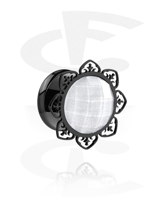 Tunel s rozšířenými konci (chirurgická ocel, černá, lesklý povrch) s vintage designem