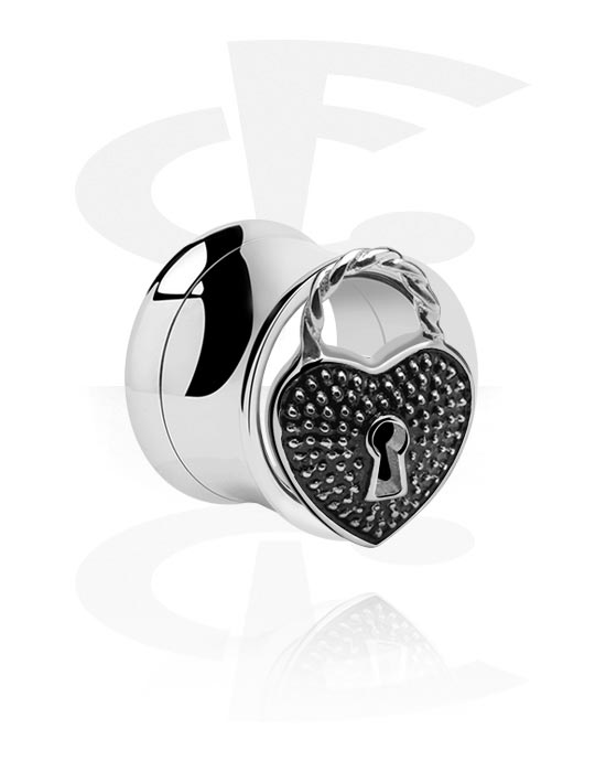 Tunel s rozšířenými konci (chirurgická ocel, stříbrná, lesklý povrch) s designem srdce