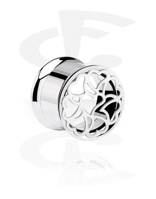 Tunel s rozšířenými konci (chirurgická ocel, stříbrná, lesklý povrch) s designem srdce
