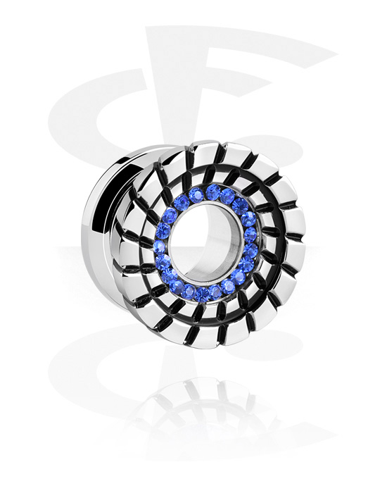 Šroubovací tunel (chirurgická ocel, stříbrná, lesklý povrch) s krystalovými kamínky