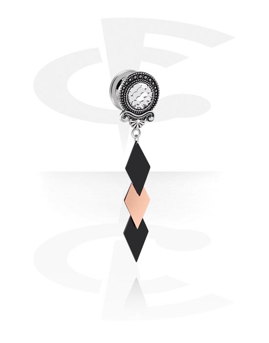 Šroubovací tunel (chirurgická ocel, stříbrná, lesklý povrch) s designem rybí šupiny a přívěskem