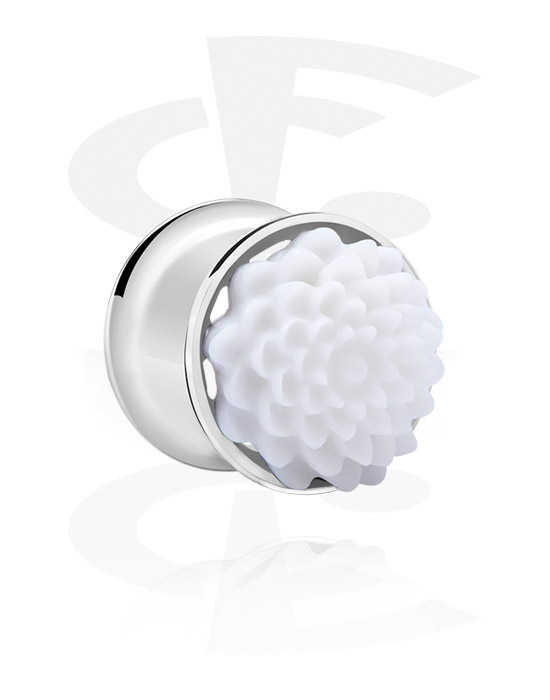 Tunel s rozšířenými konci (chirurgická ocel, stříbrná, lesklý povrch) s koncovkou květina