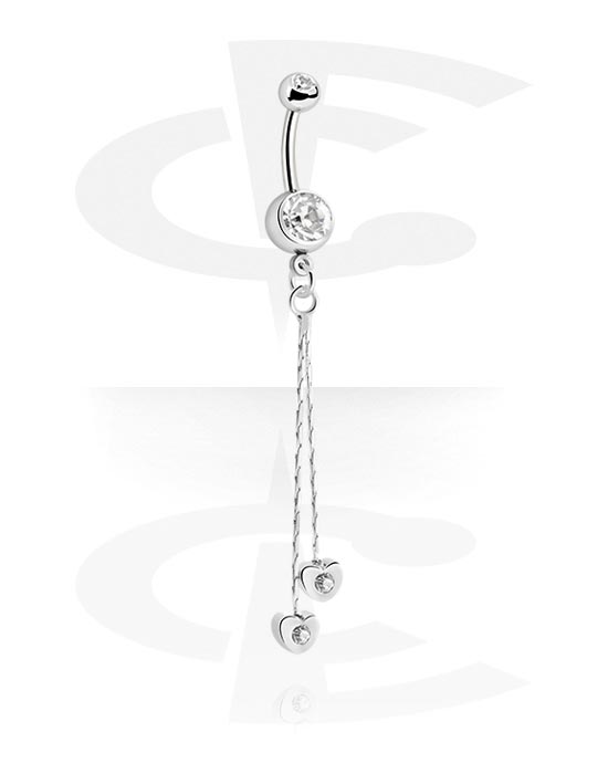Kroužek do pupíku (chirurgická ocel, stříbrná, lesklý povrch) s přívěskem srdce a krystalovými kamínky