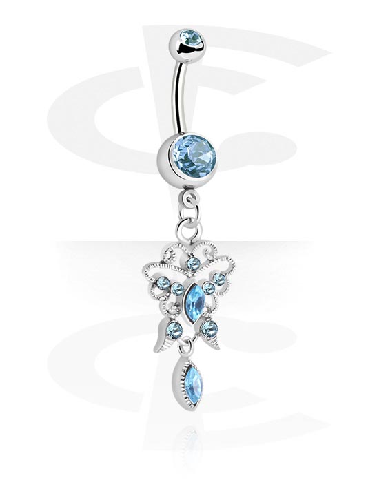 Kroužek do pupíku (chirurgická ocel, stříbrná, lesklý povrch) s přívěskem a krystalovými kamínky
