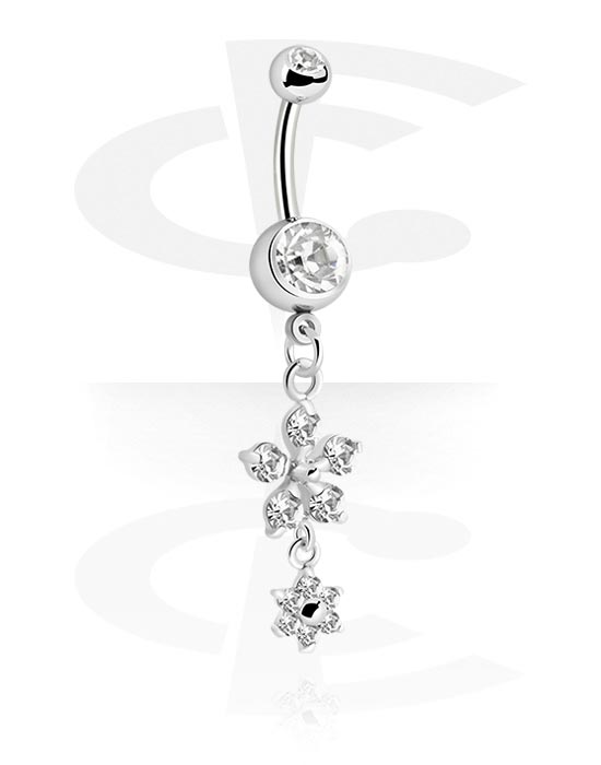Kroužek do pupíku (chirurgická ocel, stříbrná, lesklý povrch) s přívěskem květina a krystalovými kamínky