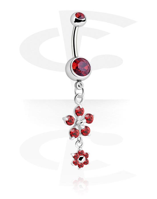 Kroužek do pupíku (chirurgická ocel, stříbrná, lesklý povrch) s přívěskem květina a krystalovými kamínky