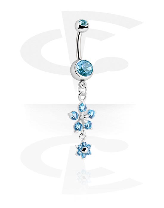 Kroužek do pupíku (chirurgická ocel, stříbrná, lesklý povrch) s přívěskem květina a krystalovými kamínky