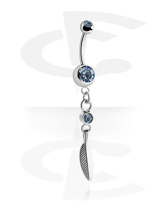 Kroužek do pupíku (chirurgická ocel, stříbrná, lesklý povrch) s přívěskem pírko a krystalovými kamínky