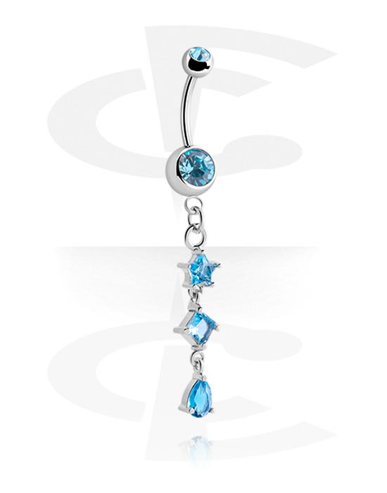 Kroužek do pupíku (chirurgická ocel, stříbrná, lesklý povrch) s Zdobenými kuličkami a přívěskem