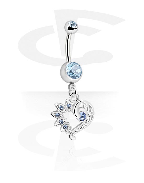 Kroužek do pupíku (chirurgická ocel, stříbrná, lesklý povrch) s přívěskem srdce a krystalovými kamínky