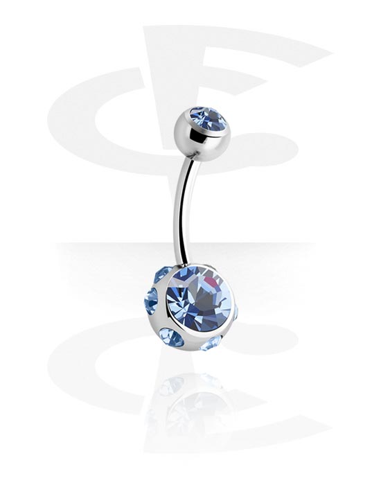 Kroužek do pupíku (chirurgická ocel, stříbrná, lesklý povrch) s krystalovými kamínky