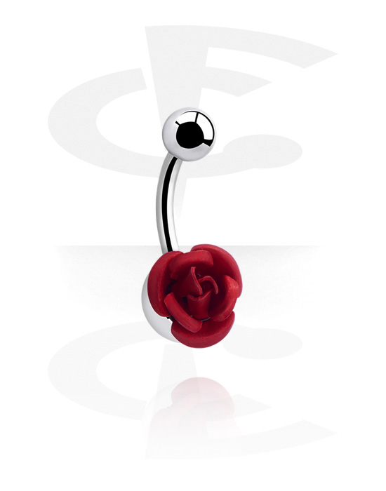 A rose is a rose is a rose... Yes, we love roses, so we designed this lovely curved barbell with a rose set in a surgical steel ball. A gorgeous little thing, available in various colours.