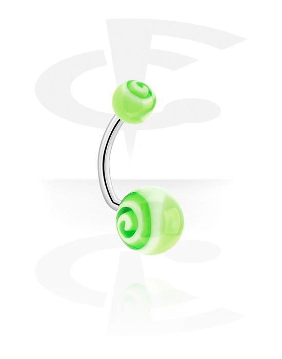 Barvy lízátka pro váš piercing: Banánek se stočenými „spirálovými“ kuličkami je zde připraven v mnoha báječných barvách. Na co máte chuť?