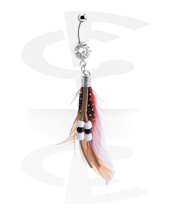 Kroužek do pupíku (chirurgická ocel, stříbrná, lesklý povrch) s krystalovým kamínkem