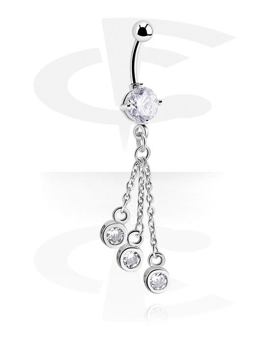 Kroužek do pupíku (chirurgická ocel, stříbrná, lesklý povrch) s přívěskem a krystalovými kamínky