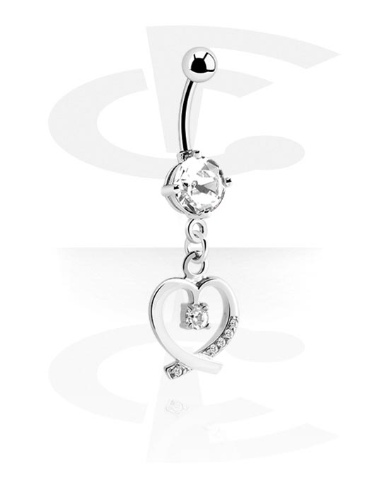 Kroužek do pupíku (chirurgická ocel, stříbrná, lesklý povrch) s designem srdce a obručí pro koncovky